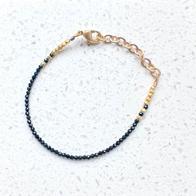 A lovely gradient of denim blue opals paired with gold accents. Available for your wrist and your ankle. Gemstones and gold plated details. Bracele...